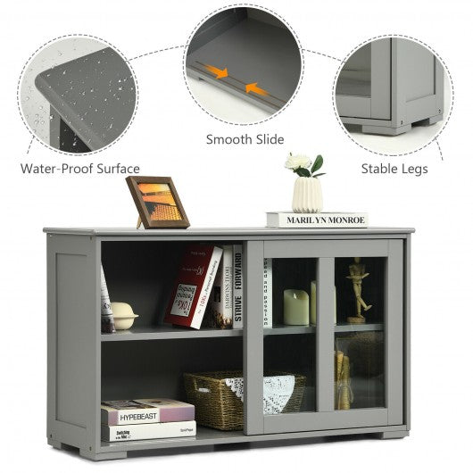 Sideboard Buffet Cupboard Storage Cabinet with Sliding Door-Gray