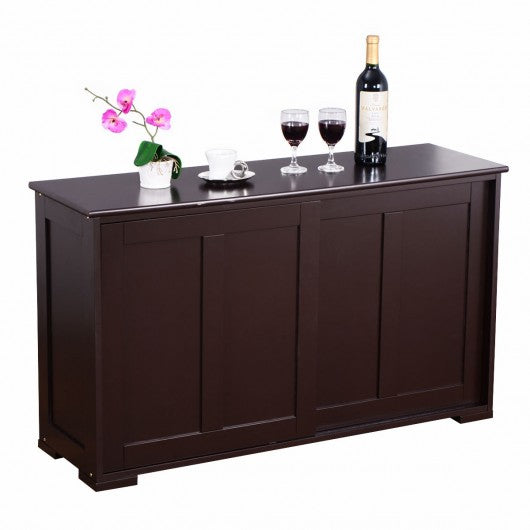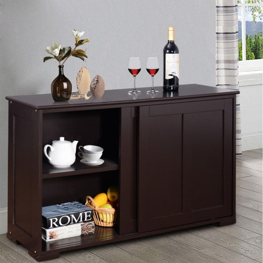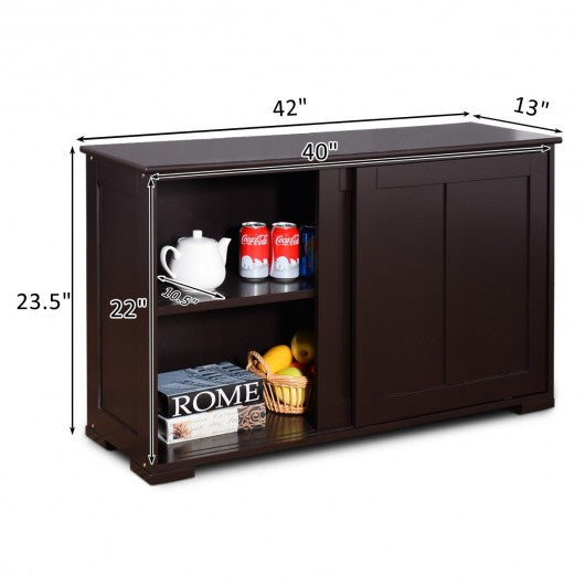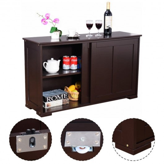 Kitchen Storage Cabinet with Wood Sliding Door-Brown