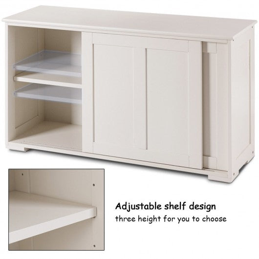 Kitchen Storage Cupboard Cabinet with Sliding Door-Cream White