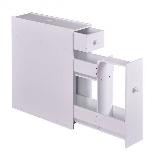 This bathroom floor cabinet is a great space saver with a simple classic style that blends with any decor. This white storage cabinet features crisp clean lines and functional storage. It coordinates well with any bathroom decor also adds more storage space to the bathroom or clears the clutter from the counter top. The MDF panel will be durable and sturdy. With one top drawer and a second deep-set sliding drawer with two built-in shelves this standing floor bathroom cabinet is a great way to eliminate clutter from any bathroom in your home. It?s an ideal way to store toiletries cleaning products and bathroom accessories out of plain sight. Do not hesitate to buy one! Slim design allows this cabinet to fit into tight space Offer other space for your things Solid mdf construction durable and sturdy Lightweight slide-out bathroom floor cabinet helps you to make full use of space Durable and sturdy construction Ideal for bathroom living room kitchen and bedroom A great addition to enhance home d?cor Accessories are not easy to get rusty Easy to assemble according to instruction by yourself