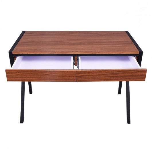 This computer desk which is of elaborate design provides ample space to work without making a room look clunky instead adding a simple but profound attitude towards your life. The top of the desk is made of durable structure that provides a more classy appearance everyone can enjoy. Beneath the desk is where you can place a computer tower. Moreover it has two big smoothly slide-out drawers which offers large storage space for your daily supplies. Thanks to its uncanny workmanship on details this computer desk looks elegant and actually with good quality. Brand new and high quality K-type frame modern and stylish Made of sturdy wood and powder-coated iron pipe Durable for a lifelong use Featuring 2 slide-out drawers offers large storage space Ideal for business or personal use Assembly required