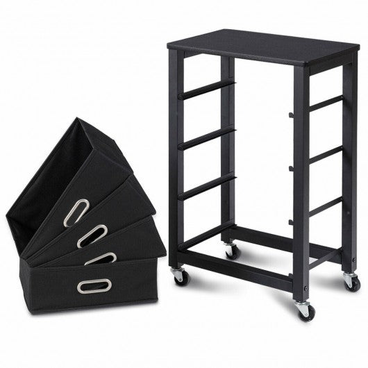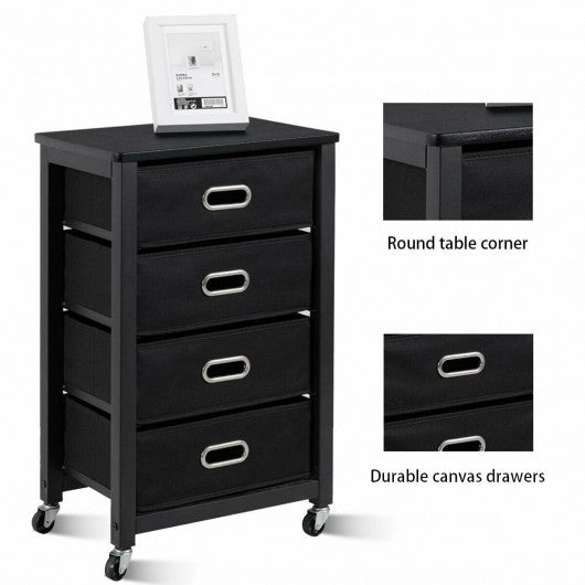 This attractive and practical rolling file cabinet is a perfect decor to your home or office. Constituted by engineering particleboard and iron it is sturdy and durable. Equipped with 4 rolling casters it�s quite easy to move around. With 4 pull-out large high-side drawers this cabinet offers plenty of storage space and meets all kinds of demands for you. The dark color makes it seamlessly match with any furniture and fit into any room. Make your office more efficient and orderly by using our file cabinet. Brand new and high quality Made of engineering particleboard and iron sturdy and durable Four pull-out large canvas drawers offering spacious storage space Four casters for easier mobility Perfect for home or office an ideal addition for your desk Easy to assemble