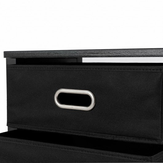Specification: Color: Black Material: Particleboard + iron + canvas Overall dimension: 16.9" x 11.0" x 27.2" (L x W x H) Size of each drawer: 13.8" x 9.8" x 4.7" (L x W x H) Net weight: 13.2 lbs Package includes: 1 x Mobile file cabinet
