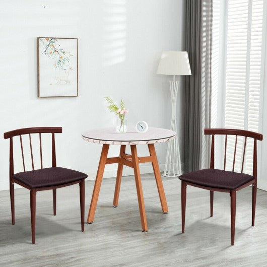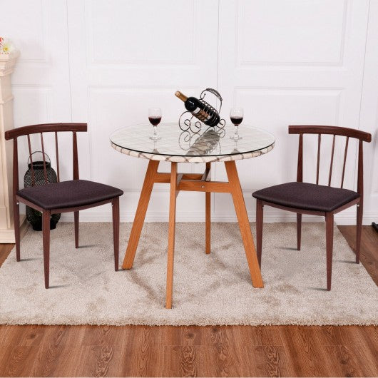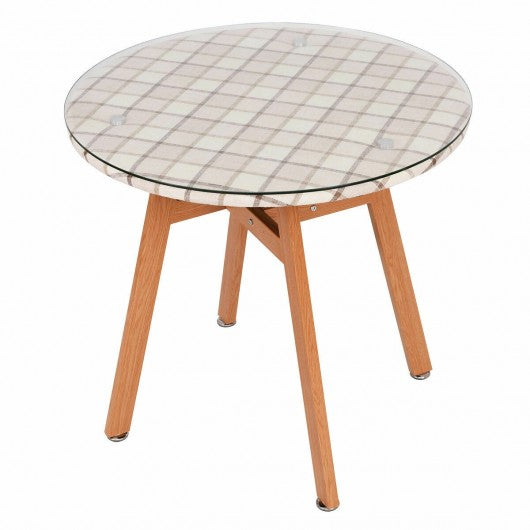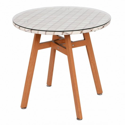 Round Dining Table with Steel Frame & Tempered Glass Top