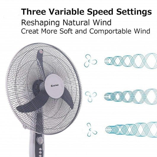 Specification: Color: Gray Voltage: 120V/60HZ Power: 70W Rotation angle: 90� Fan diameter: 18" Base diameter: 16" Overall dimensions: 20.5" x 16" x 54.5" Weight: 14 lbs