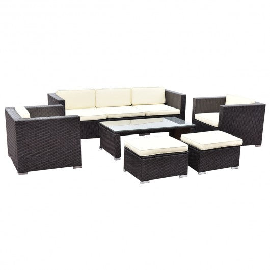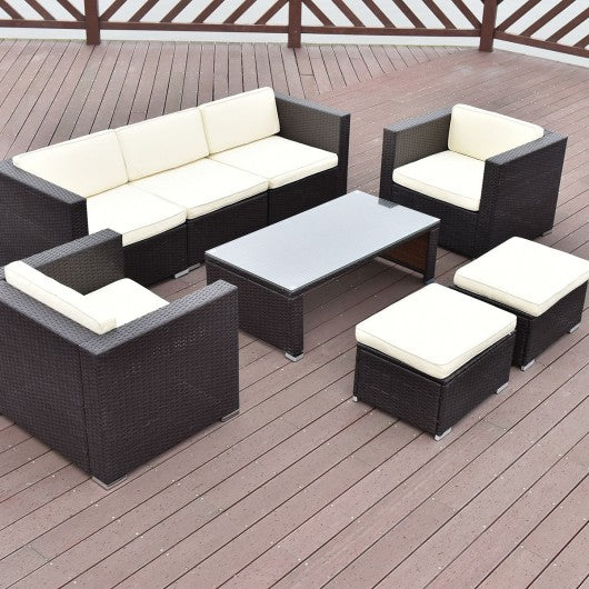 8 pcs Outdoor Patio Rattan Wicker Cushioned Furniture Set