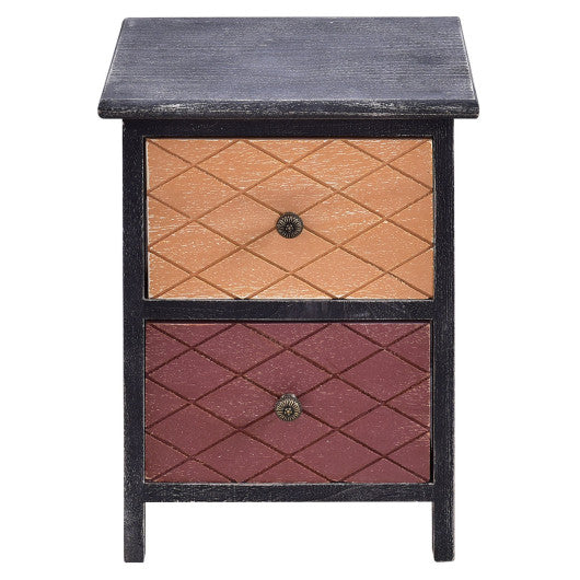 Specification: Color: as picture shows Material: wooden construction + metal knob Overall dimension: 11.6" x 11.6" x 15.4"(L x W x H) Drawer dimension: 9.1" x 9.8" x 5.1"(L x W x H) Net weight: 4.4lbs Package includes: 1 x 2 drawers bedside table