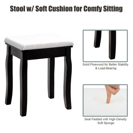 Square Mirrored Vanity Dressing Table Set with 3 Storage Boxes-Black