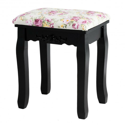 If you are looking for forward to owning a wonderful dressing table set. Come and have a look at our glamorous dressing table set! It will be a fantastic product that lets you realize your princess dream. It has a great appearance which makes it look elegant. It can be a fine display of your room. This dressing table set includes a mirrored dressing table with four drawers and a stool. One of the biggest characteristic of this dressing table is that its mirror has an elegant design. Its mirror holder is flower-shaped. How beautiful it is! And the stool has a really comfortable top. When you are sitting on it and dressing yourself you will feel that it's really an enjoyment. What a perfect dressing table set! Don't hesitate! Come and buy one! High quality and brand new Exquisite and fine craftsmanship Elegant black appearance compact style Made of mdf panel and wood leg sturdy and durable A good decoration of your home Comfortable free stool Height of stool legs perfectly matches that of table and mirror Practical dressing table with a mirror and 4 drawers Valuable mirror helps present a clear yourself 360 degree rotating mirror is appropriate for you to watch your makeup or dress Beautiful mirror with a flower-shaped mirror holder Useful 4 storage drawers and two diy dividers to store things Smooth and spacious table top Enough storage space Sturdy and durable Assembly required
