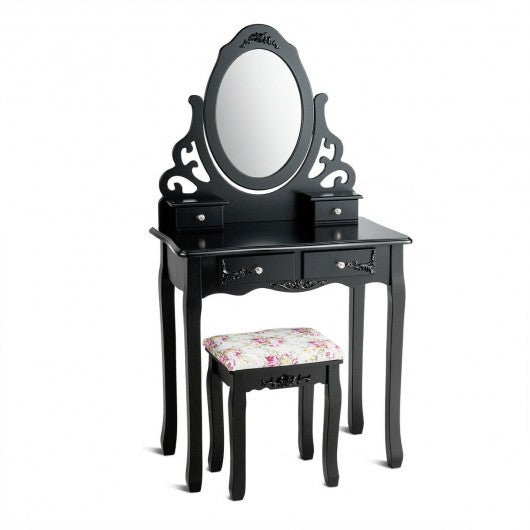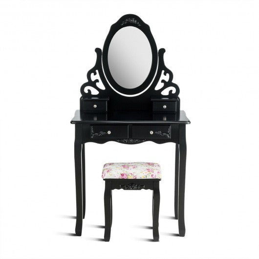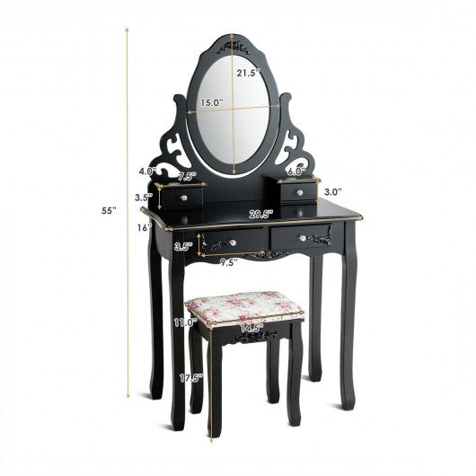 4 Drawers Vanity Wood Makeup Dressing Table Set with Mirror-Black