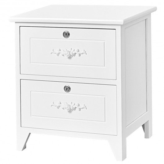 Solid Wood Elegant Storage Nightstand w/ 2 Locking Drawers-White