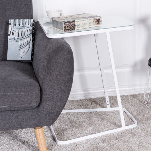 Modern C Shape Glass Steel Accent End Table-White