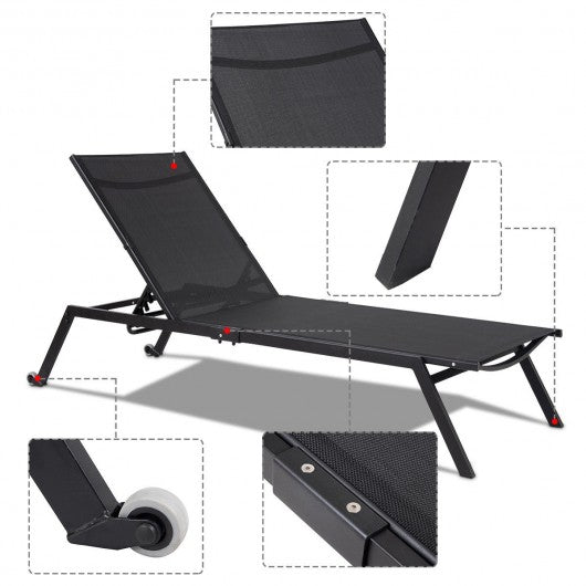 Outdoor Patio Height Adjustable Sling Armless Lounge Chaise