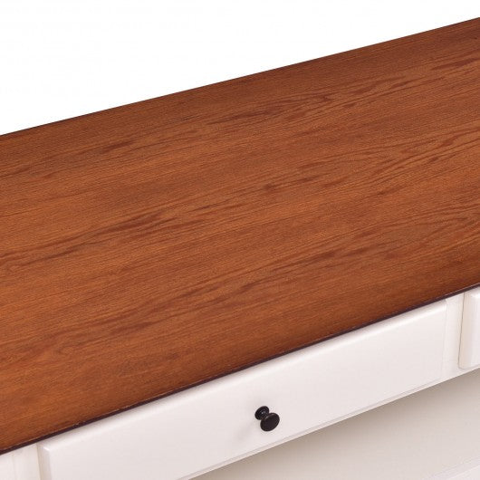 This elegant coffee table which is made from durable pine wood construction is very durable and sturdy. This coffee table is full of fashion sense and meets all your needs in life. Featuring solid wood construction it has good load capacity and long service lifetime. With two roomy storage drawers and a lower shelf you can put usual reading of newspapers or books. It can also be put in your living room. This coffee table is a perfect piece to compliment any home decor. If you are looking for such a coffee table please don't hesitate to buy it now! Brand new and high quality Chic and modern design is a good ideal for living room Durable and stable wood structure Painted finish moisture proof and moth proof Clean creamy finish with nut-brown full of contemporary style Slide-out drawers and a bottom shelf for additional storage Charming with details Easy to clean and easy to assemble