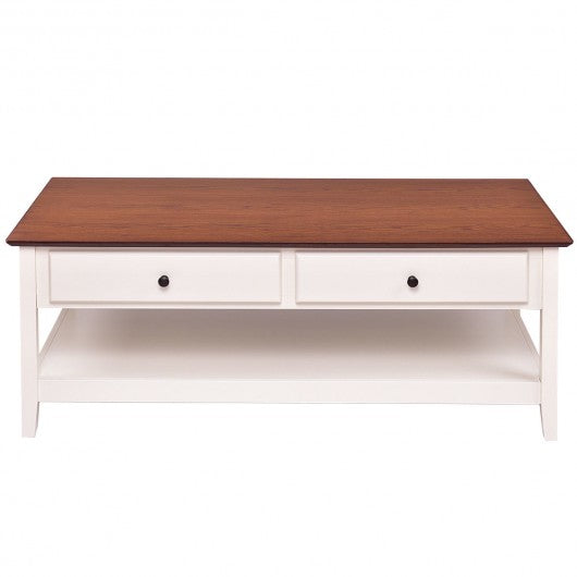 Rectangle Wood Coffee Table with Drawer & Storage Shelf