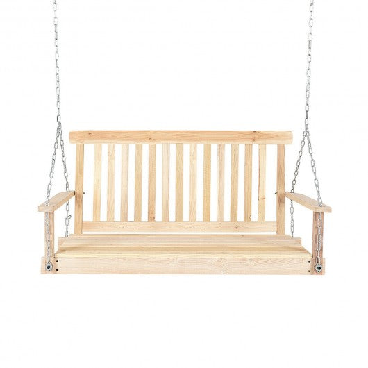 This beautifully designed porch swing will complement your outdoor furniture setting. You can swing away on a nice sunny day or cool summer night. The naturally crafted frame is made of premium fir which guaranteed rot decay and insect damage resistant making sure this porch swing last for many years. When it gets dirty you can clean it by washing it down with a hose or wash cloth. The curved design of the seat and arm rest will allow you to sit comfortably without irritation. It is weighted just right so it will not blow away or move around a lot during windy days. The porch swing comes with 2 chains so you can hang it outside of your home the same day you receive it. You can place a cushion on it for added comfort and enjoy this new patio swing during the day or night. It will be your excellent choice to buy! Brand new and high quality Made of high quality fir wood resistant to rot decay and insect damage Comes 90% assembled all of the slats are already screwed to the back and seat. The only assembly required is connecting the back and seat and securing the arms Comfortably seats two Use only screws and bolts no nails Contains two adjustable chains to ensure the safety Ideal for gardens parks backyards porches and patios Assembly is required