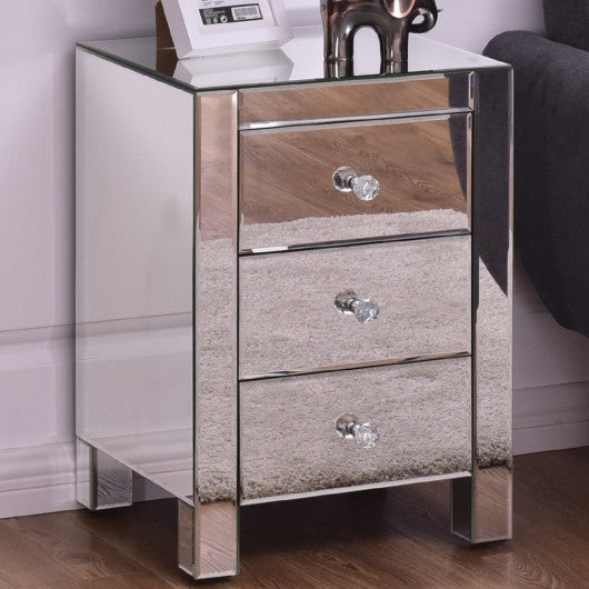 3 Drawers Modern Storage Accent Mirrored Nightstand