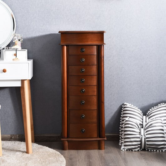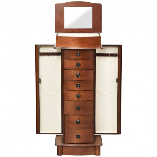 Wood Armoire Storage Chest Box Stand Jewelry Cabinet