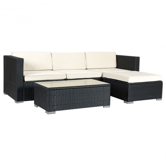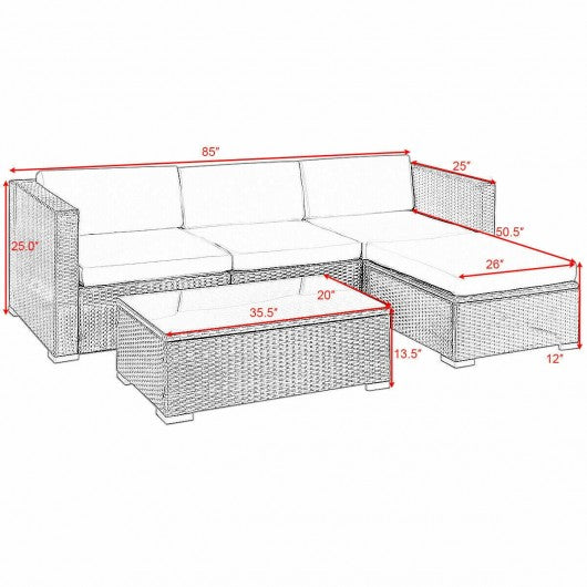 5 pcs Patio Furniture Rattan Wicker Table Shelf Garden Sofa with Cushion