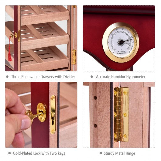 150 Cigars Display Humidor Storage Cabinet with Hygrometer