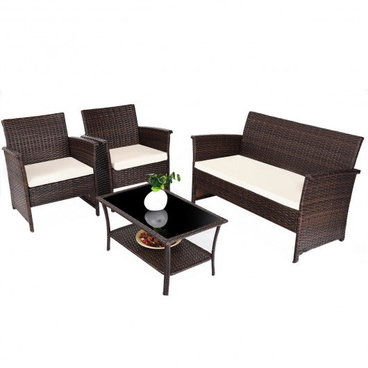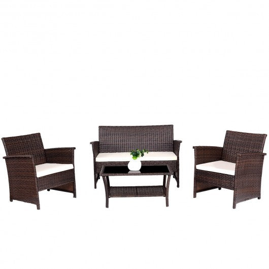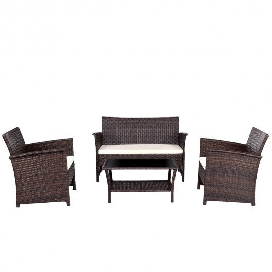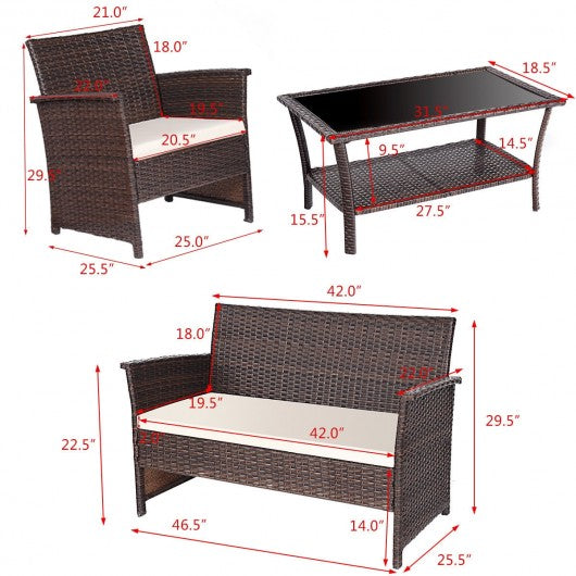 4 Pcs Outdoor Patio Rattan Furniture Wicker Sofa Set