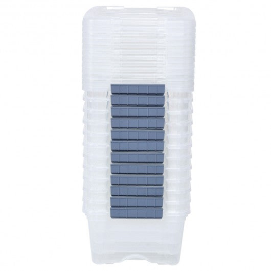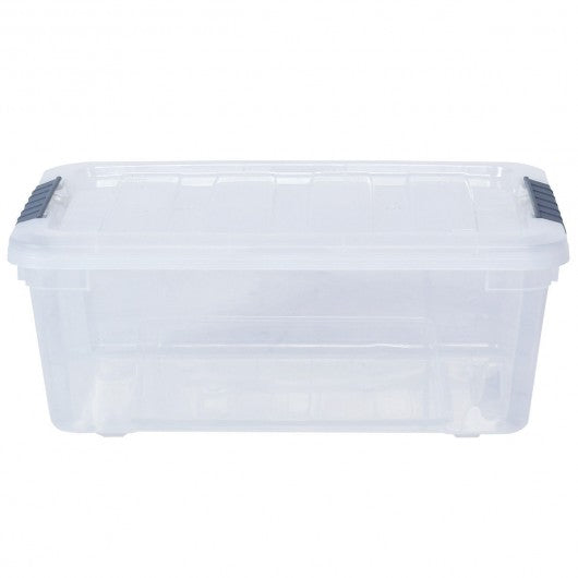 This is a plastic storage tote which is a great ideal for organizing and storing small items in the closet. Transparent design makes you easy to see what's inside. Two grooves in side to help you lift and the transparent lid snaps firmly onto the base to keep contents contained and secure.12 pcs plastic storage tote are able to neatly stack to maximize storage space. It will help you make a clean room. Don't hesitate to buy one! Brand new and high quality Transparent design make you easy to see what's inside Two grooves in side to help you lift Sturdy plastic bin with buckle up latches secure contents inside Stackable storage boxes to make the most of limited space