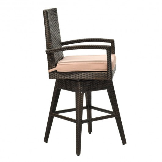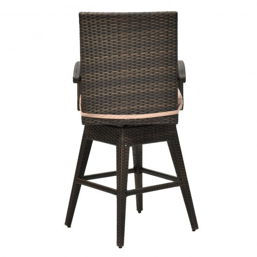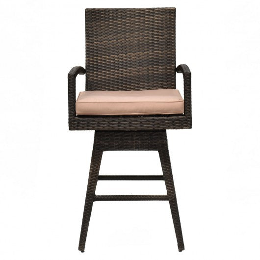 Outdoor Wicker Swivel Bar Stool Chair w/ Seat Cushion
