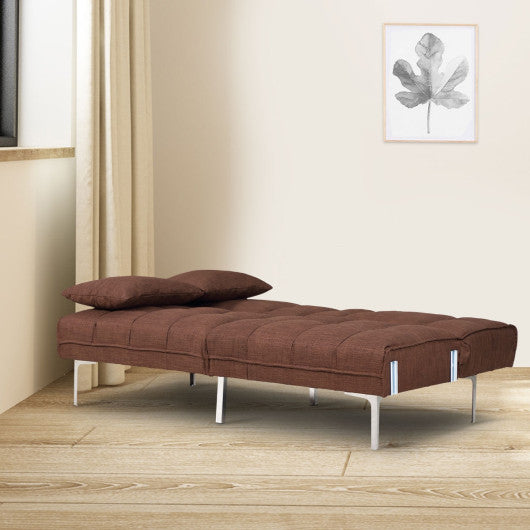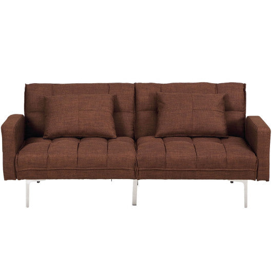 Futon Sofa Convertible Sofa Bed w/ Adjustable Armrests & Backrests