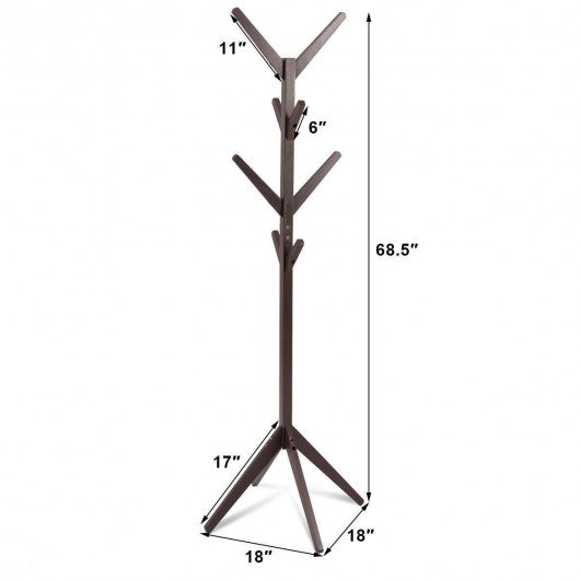 This simple and stylish wooden coat rack is a perfect stable free-standing hanger for coat clothes hats shoes umbrella purse and so on. Features a quality wooden construction this hall stand will make your room more neat and beauty. It fits in your space and needs and fits on your budget. The rack owns smooth surface for easy clean. The unique design makes it a good decoration for your house. Don't hesitate to bring it home! Brand new and high quality Sturdy base on flat surface Easy assembly Quality wooden construction Simple and stylish design is suitable for any room Smooth surface easy to keep clean and maintain Perfect stable free-standing hanger for clothes and hats umbrella etc