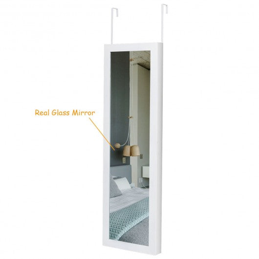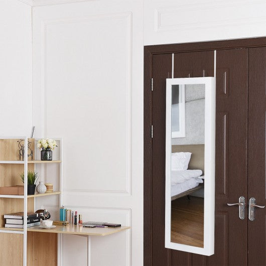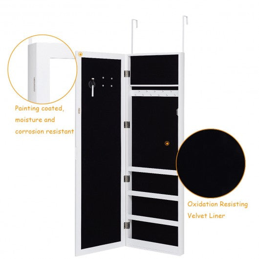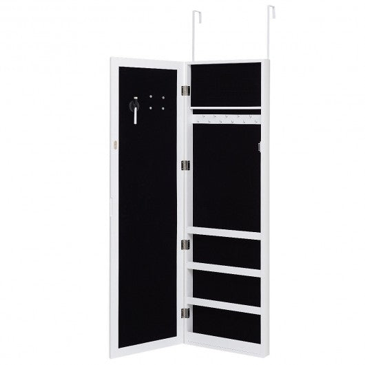 Wall Door Mounted Magnetic Mirrored Jewelry Cabinet-White