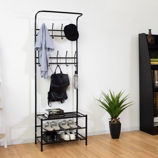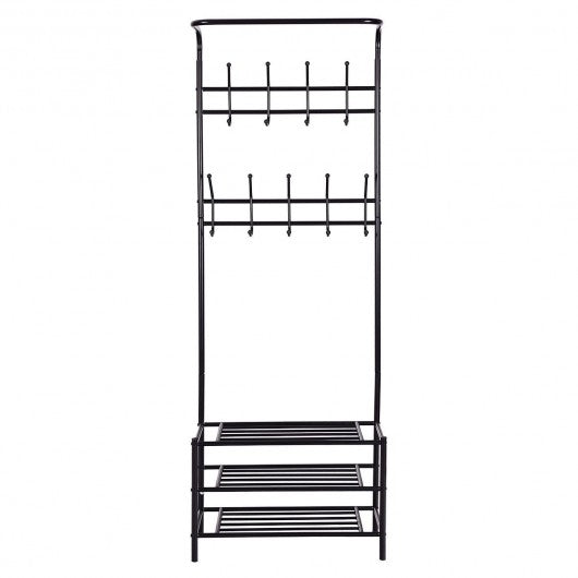 Metal Entryway Coat Hat Shoes Rack 18 Hooks Garment Rack
