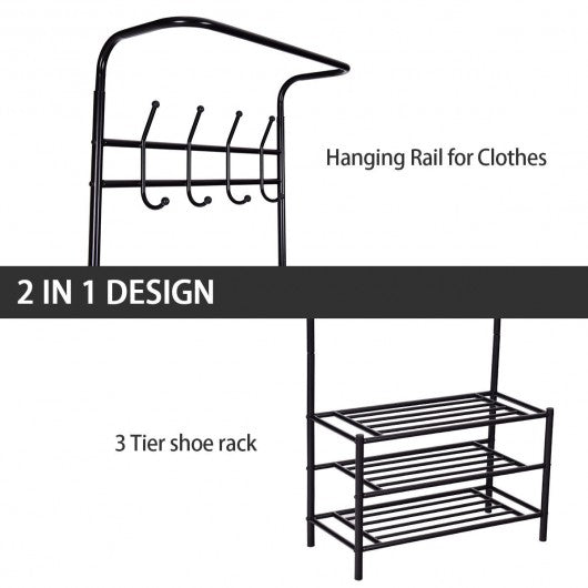 Combined with creative design and high quality this entry organizer is a brilliant solution to collect any of your stuff to keep your room clean and neat. It features 3-tier shoe rack and spacious hook space to manage your different storage demands within less space. With this simple but stylish entry organizer you can store many shoes in the 3 bottom shoe shelves. The top shelf is also great for your handbags purses storage boxes and more. Multiuse durability and style this coat rack organizer is definitely a great choice for homes & offices. Don't hesitate to buy one it will be your great choice to buy one. Brand new and high quality Stylish and elegant design Steel construction with powder coating more durable more sturdy and load-bearing better 2 in 1 design good combination of hanger and shoe rack It can store clothes hats umbrellas bags shoes etc Round corner hooks protect your clothes carefully Smooth surface easy to keep clean and maintain Space saving Smart storage and organization Perfect for your entryway bedroom office living room Easy to assemble and easy to clean