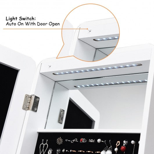 Standing Armoire Organizer Jewelry Cabinet w/ LED -White