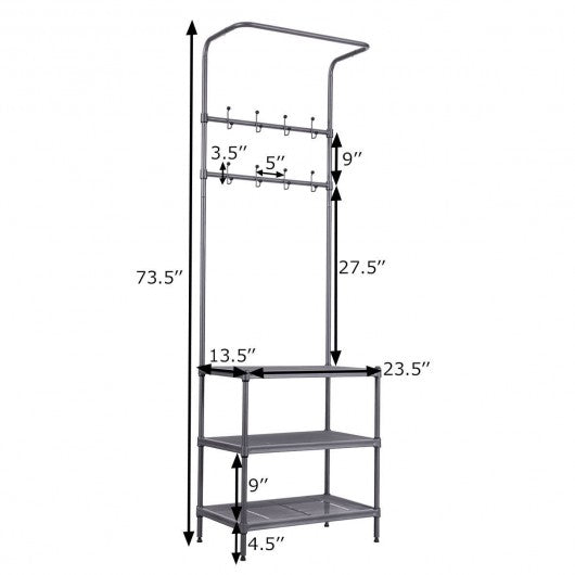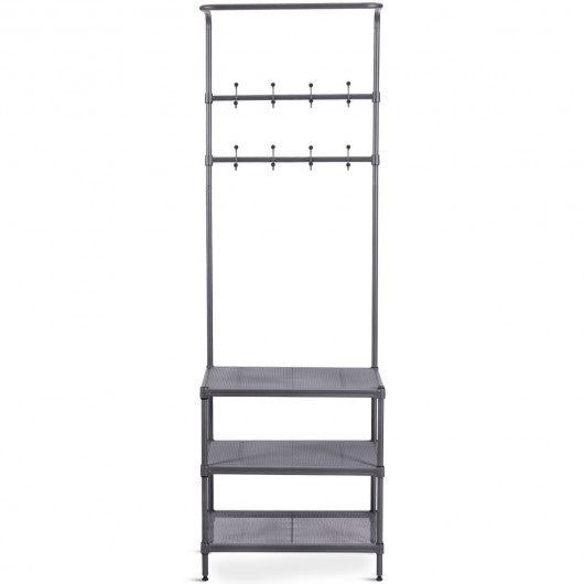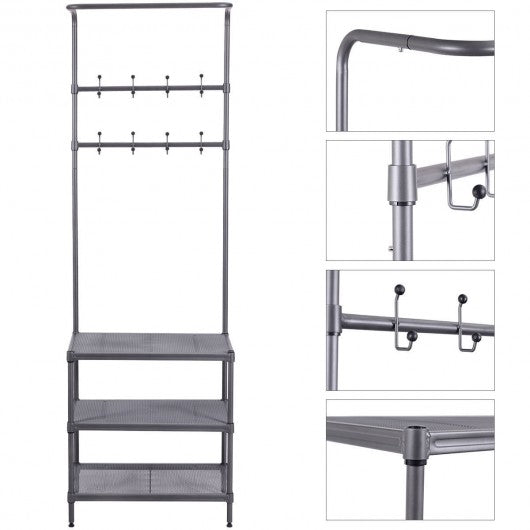 3 Tier Metal Storage Shelf 16 Hooks Hat Shoes Rack
