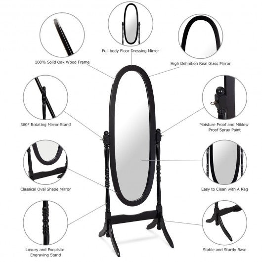 Swivel Full Length Ovel Mirror Free Standing Dressing-Black