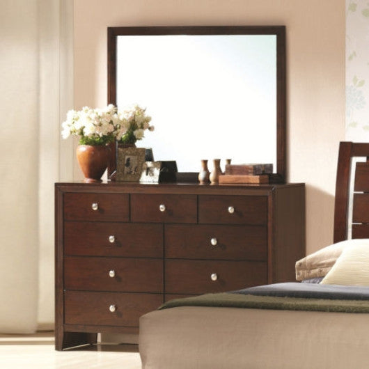 Featuring smooth and chic this dresser and mirror set offers subtle style to enhance your bedroom's appeal. It provides stylish and practical functional as a master room or guest room centerpiece. This dresser and mirror set is crafted from solid MDF construction with a smooth surface. Nine drawers provide enough room for clothing and accessories. Besides the wide mirror offers a full reflection of your room to make getting ready to face the day simple and easy. This classic design and bold style add a special feature in your bedroom. All you need to do is purchase this dresser mirror set and enjoyment. Don't hesitate! Brand new and high quality Stylish design Nine drawers ample your bedroom storage This dresser is available in beautiful finishes to match any home decor Handles are easy for switch the drawers Smart and stylish storage and organization solution for living room or bedroom Drawers run smoothly on metal glides Need to assemble