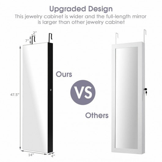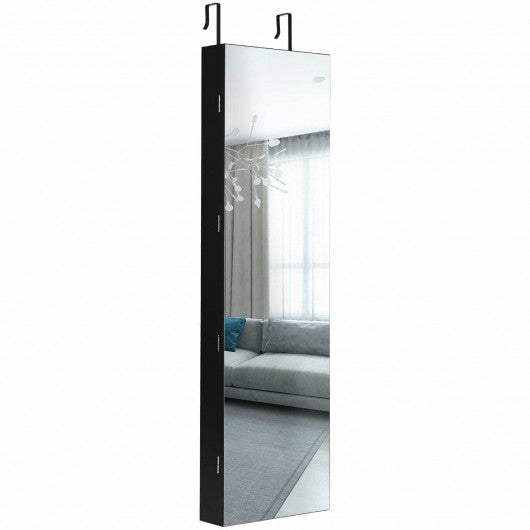 Wall and Door Mounted Mirrored Jewelry Cabinet with Lights-Black