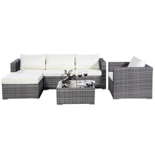 6 pcs Rattan Cushioned Sofa with Ottoman