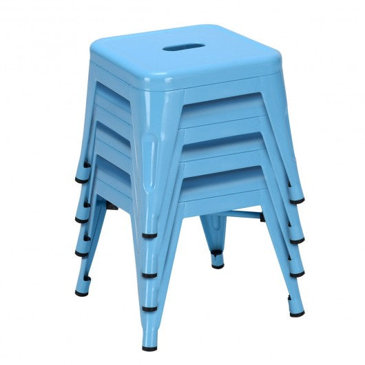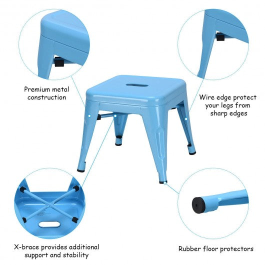 Set of 4 Lightweight Stackable Metal Tolix Kids Stool-Blue