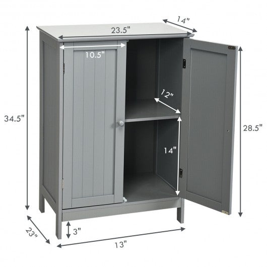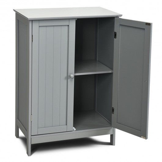 Bathroom Floor Storage Double Door Cupboard Cabinet-Gray
