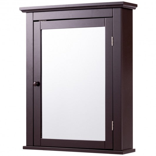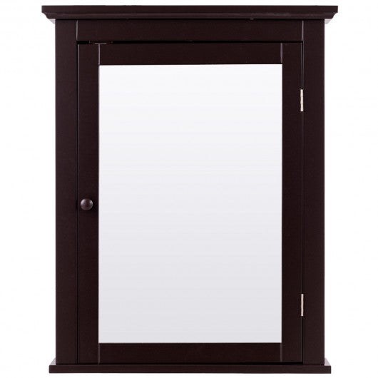 This wall mounted mirror cabinet combines stylish and functionality to create a modern home furnishing which is ideal for use in bathroom and bedroom. With brown finish elegant and simple appearance this mirror cabinet will well match with your furniture in your home. It can perfectly blend in various decoration styles and leave your guests a deep impression. Featuring 2-tier cabinet with mirror this cabinet adds storage space to your room. It is a ideal option for small bathroom. It has sufficient space to storing and organizing linens toiletries and bath essentials like soaps shampoos body wash and more. The design of door not only hide the item but also keep moisture and dust out. This cabinet is made of thick MDF board with smooth paint waterproof and anti-corrosion which ensures durable and sturdy. So don't worry this mirror cabinet can provide long time service for your family. Don't hesitate to buy it! Brand new and high quality Made of high quality material smooth sturdy and durable It has a long service life Wall-mounted save space 2-tier cabinet add some additional storage for you Magnetic lock to hold doors shut Convenient for use Easy to maintain and set up