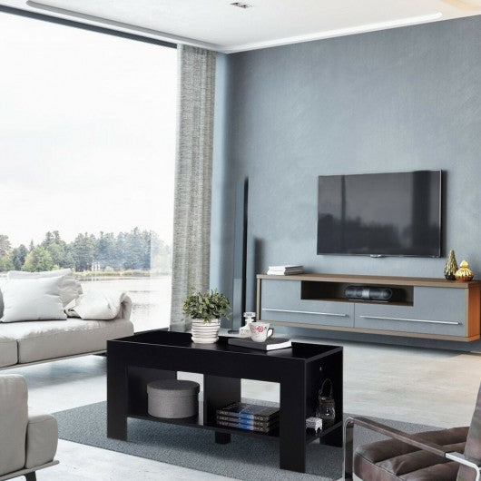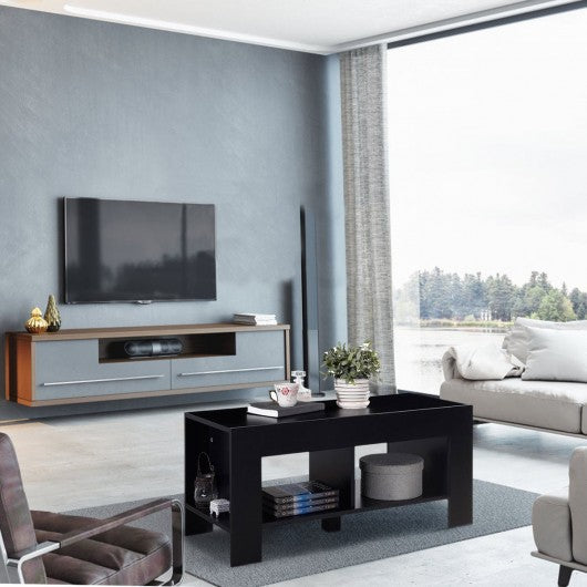 2-tier Wood Coffee Table Sofa Side Table with Storage Shelf-Black