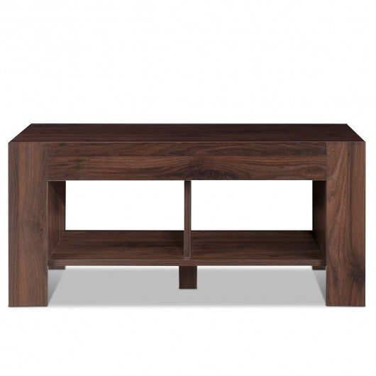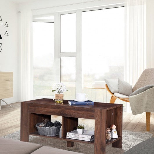 2-tier Wood Coffee Table Sofa Side Table with Storage Shelf-Walnut