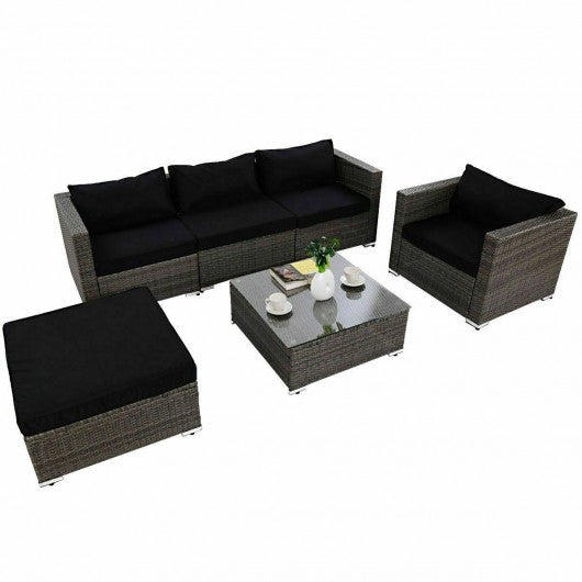Rattan Wicker Patio Sofa Set with Black Cushion
