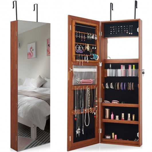 Lockable Storage Jewelry Cabinet with Frameless Mirror-Coffee