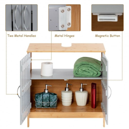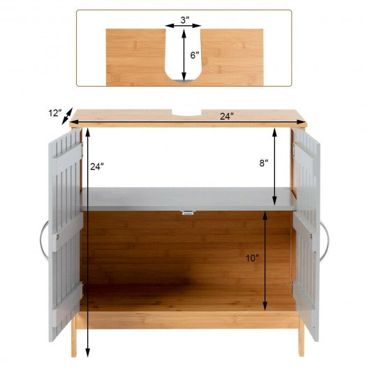 Bathroom Under Sink Vanity Cabinet Bamboo Freestanding Shelf Cabinet
