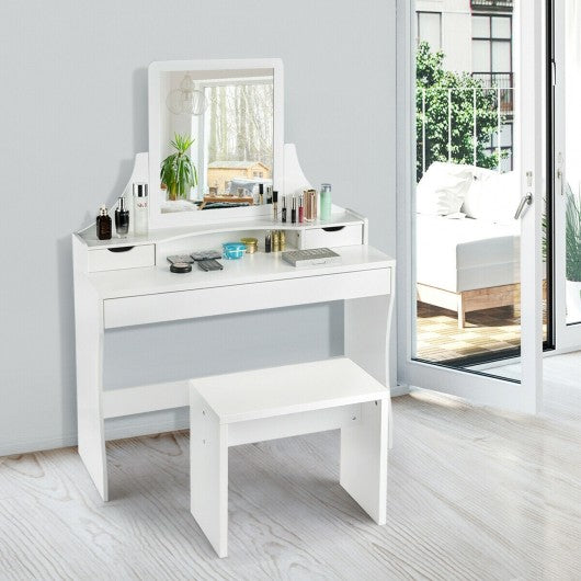 Vanity Wooden Makeup Dressing Table Stool Set with Mirror