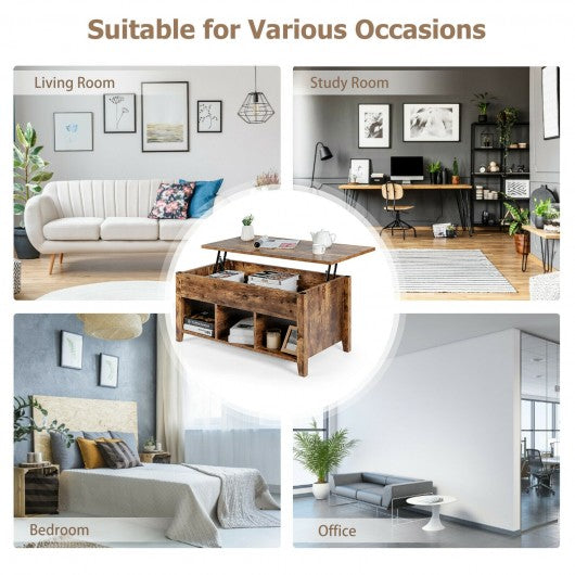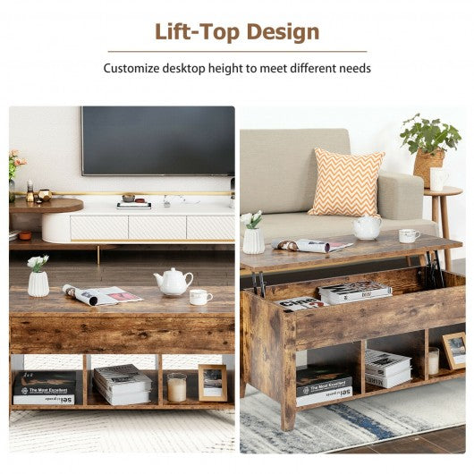 Lift Top Coffee Table with Storage Lower Shelf-Tan