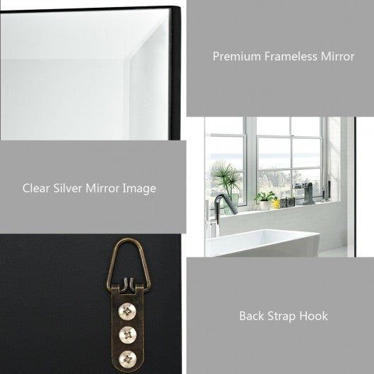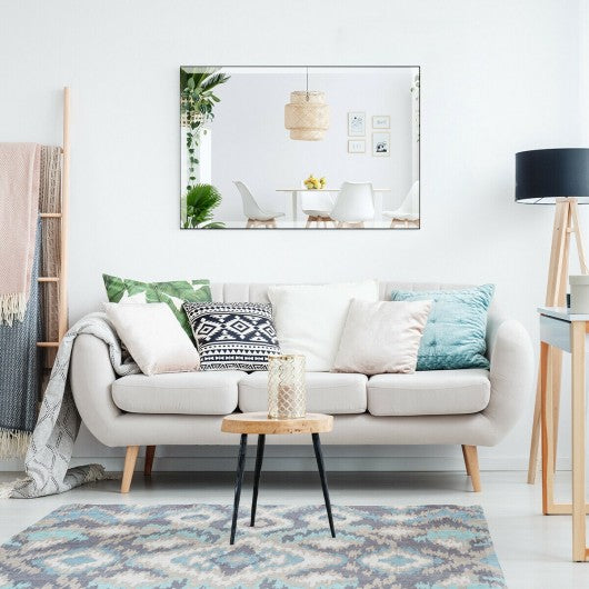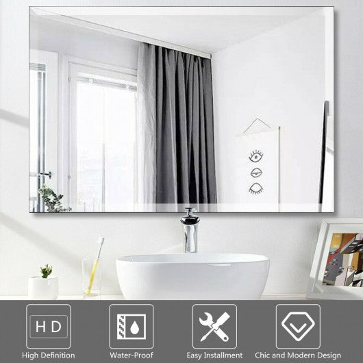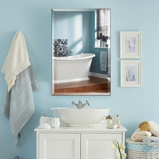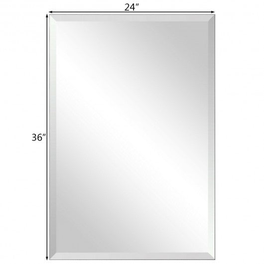 This is the elegant and trendy rectangle mirror which combines style and function to create a modern home furnishing whihch is that ideal for bathroom kitchen bedroom or any other space. Besides we using premium silver mirror and core board which ensure the sturdiness and guarantee aesthetic of the mirror. This wall mounted mirror measures 24inch x 36inch providing a distortion-free reflection for you. This rectangle mirror includes four pre-installed loop-style hangers for easy installing in either a vertical or horizontal orientation. This frameless round mirror with bevel can be used in bedroom living room and bathroom as wall mirror d�cor and helps to create a vivid effect. Don't hesitate to buy it! Made of durable premium glass which is not easy to break Using excellent silver mirror providing a distortion-free reflection for you Wall mounted and suitable size not occupying the place Classic rectangle mirror with1� bevel decorate your room perfectly Four bronze vintage style hooks in the back Fixed to the core board securely for ensures stability and safety of the mirror Supports hanging in either a vertical or horizontal orientation Perfect for your bathroom vanity bedroom or any other room of your home Quick to mount with backing hooks and screws