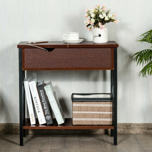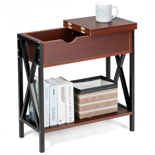 This is the classic and elegant sofa side table which add functionality to any room or hallway in your home. Its simple but great design and great storage capabilities are just good to you. Hidden hinged design provides spacious storage space but keeps your space neat. This table is durable and stable because of the premium MDF material and sturdy steel legs. At the top and bottom you can put your crafts and furnishing articles. In the internal you can store personal items and so on. It's a good choice for you. Don't hesitate to buy it now! Hinged Tabletop offers concealed storage Furniture Designed for Small Space Living Smooth surface is easy to clean and maintain Spacious tabletop is a ideal place for display crafts Solid steel X-frame and MDF board ensure its stability and durability Practical table for bedroom living room and entryway Retro and elegant design are suitable for home decoration Simple assembly needed